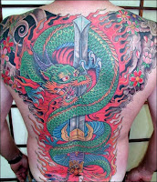 Dragon tattoos are often see alongside other designs such as swords, clouds, flames and animals such as big wild cats.